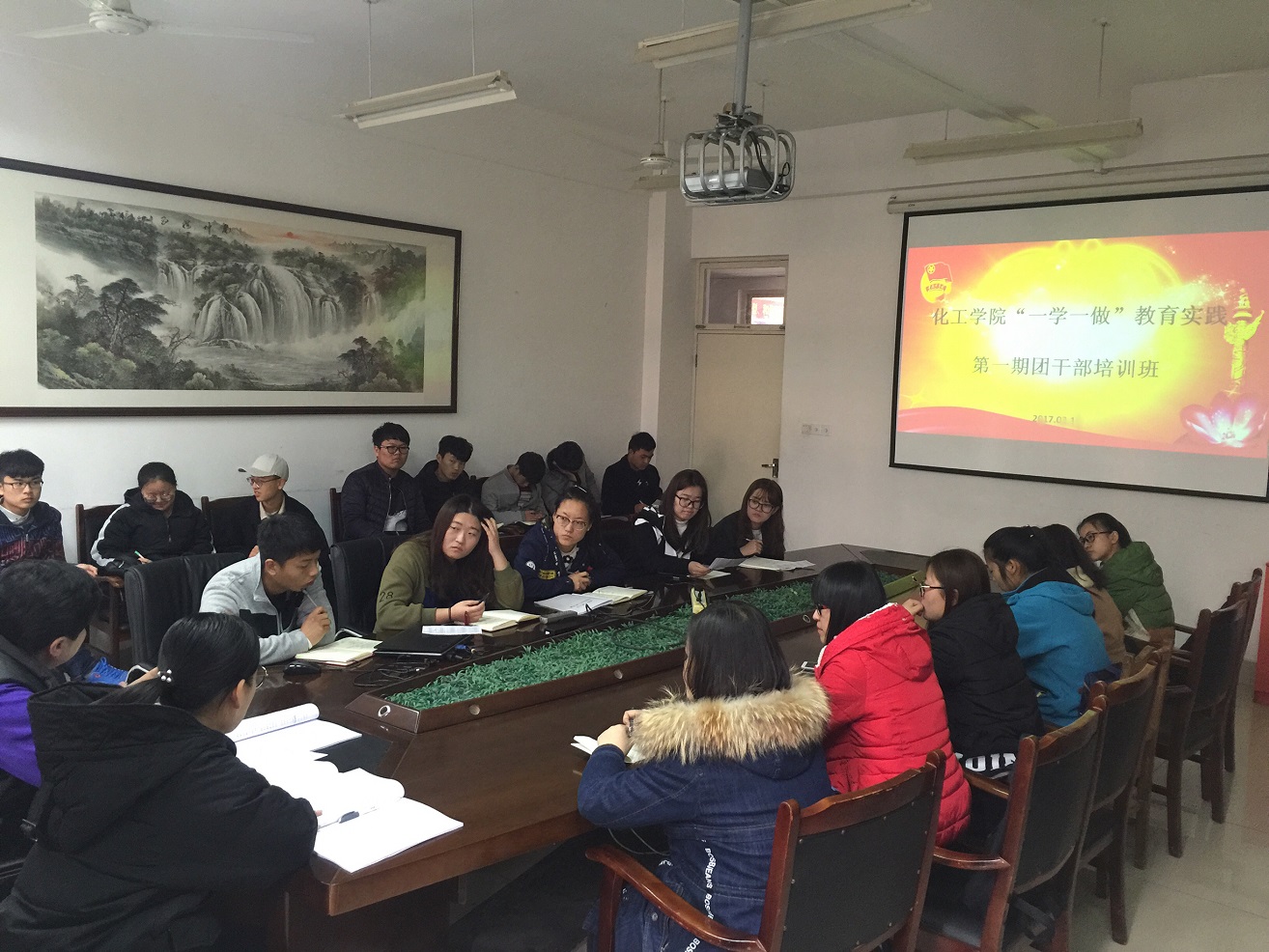 为推进“一学一做”教育实践有序进行,3月22日,化工学院在1号教学楼B310举办了第一期团干部培训班,学院团委书记孔繁繁、团委老师盛霄、优秀团干部代表30余人参加了培训班。