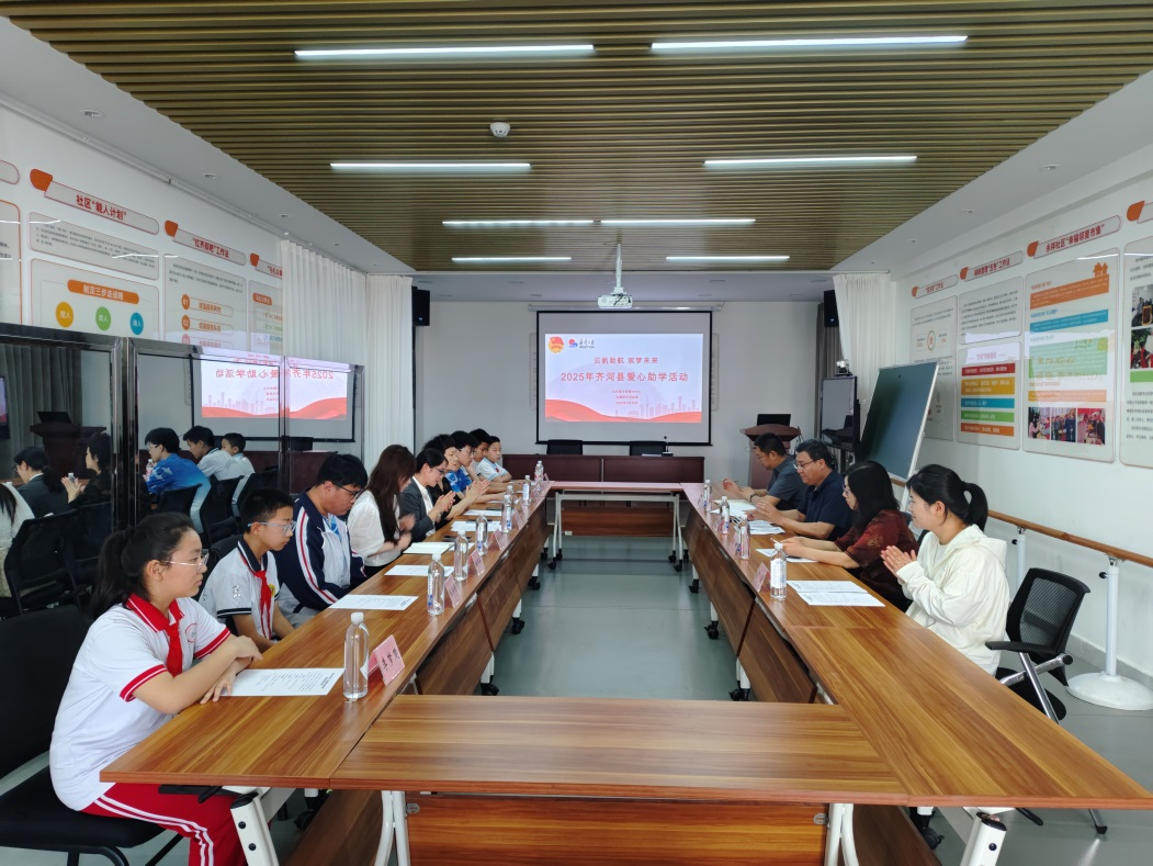 活动伊始,共青团齐河县委书记史桦对尚明一行的到来表示热烈欢迎与诚挚感谢。随后,党员志愿者为孩子们送去助学金和儿童节礼物并与孩子们亲切交流。党委书记尚明勉励同学们要持续保持对学习的热情,努力把来自社会的关爱化作发奋学习、报效祖国的强大动力,并热情邀请孩子们到齐鲁工大体验大学的学习环境,感受大学的文化氛围,希望能开拓孩子们的视野,激发孩子们对美好生活的向往。